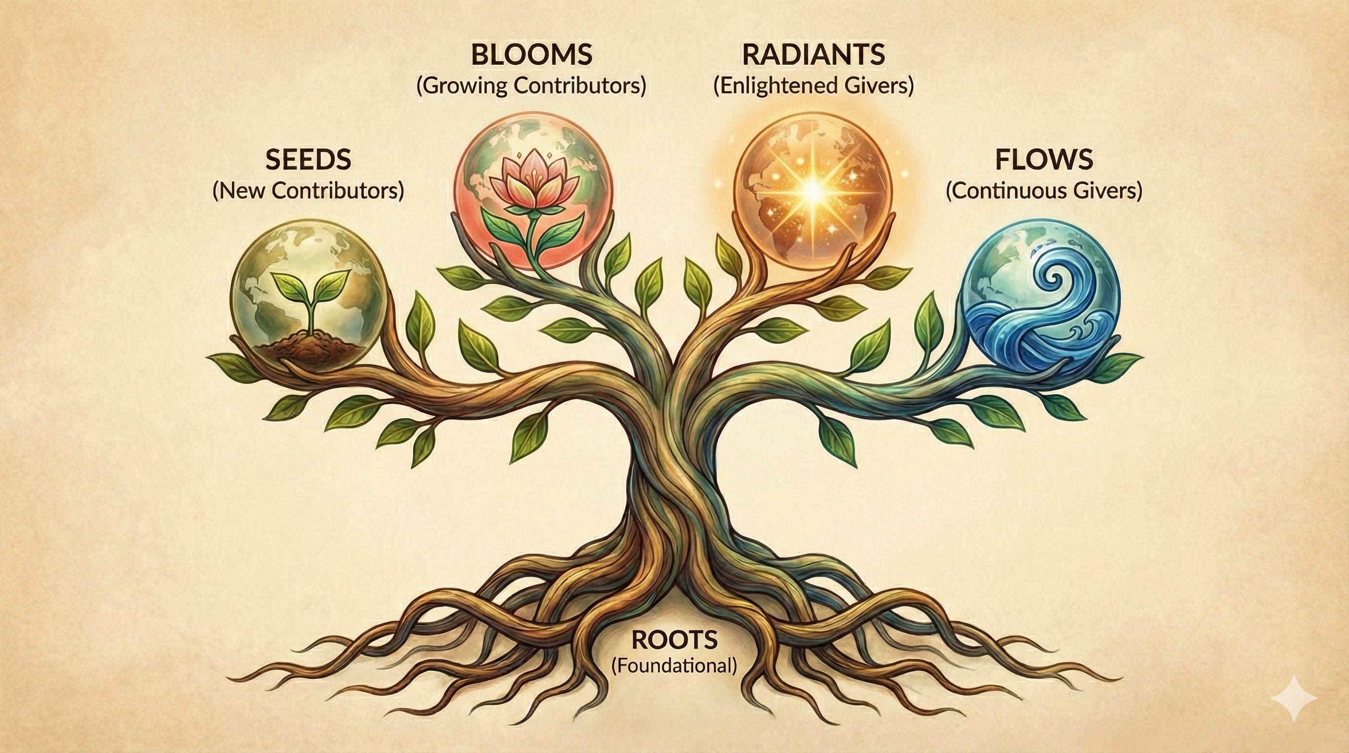 When contributions begin to inspire others and create ripple effects, they become radiants—giving off light and energy that illuminates the whole community.