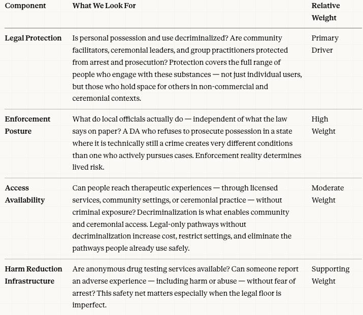 A Framework for Psychedelic Policy: Score Cards