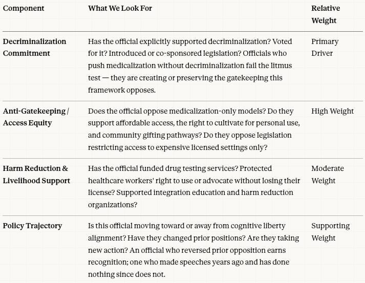 The Mind Score measures what they’ve actually done about it in support of making psychedelics accessible — in votes, budgets, legislation, and demonstrated behavior.